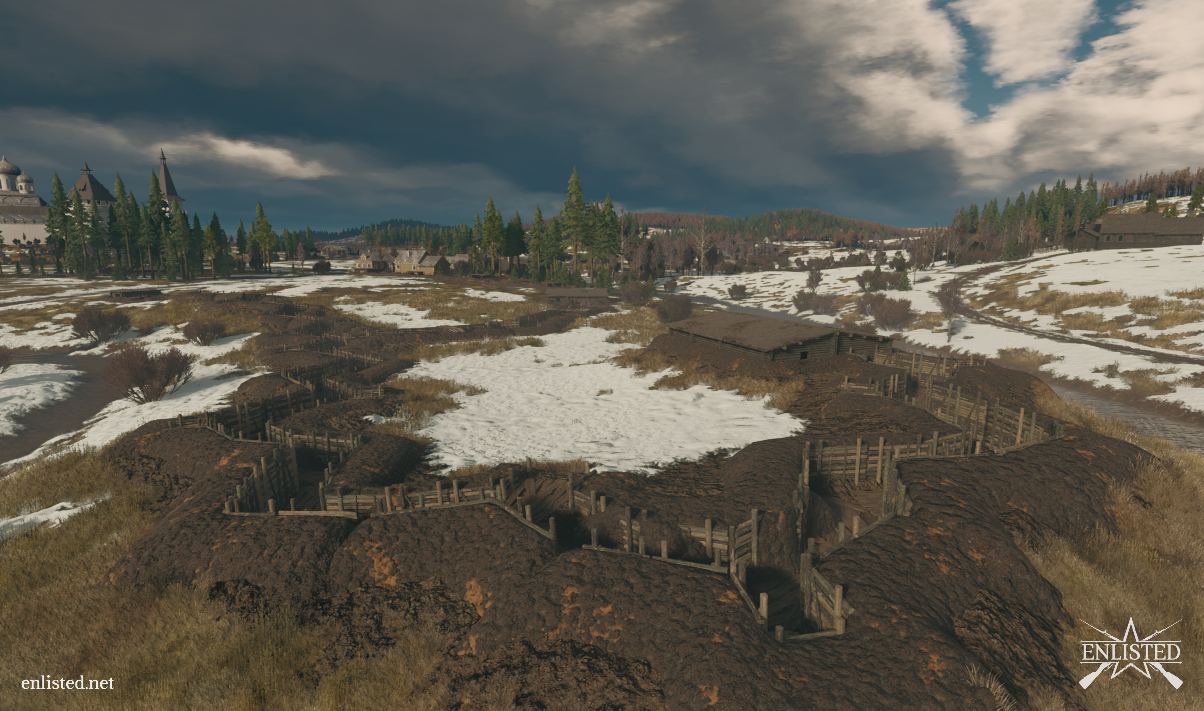 Локация “Битва под Москвой” В разработке 14 декабря 2018 В сегодняшней публикации несколько скриншотов локации “Битва под Москвой”, над которой мы сейчас работаем. Создаём укрепления, добавляем окопы, продолжаем работать над ландшафтом и создавать атмосферу боя.
