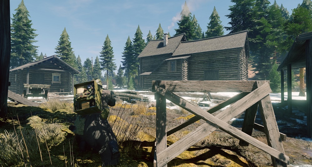 Тёмные бревенчатые дома. Адаптация делает их спокойно-серыми, и они смотрятся неплохо, но такая экспозиция приводит к тому, что снег и небо в окнах «слепит». Разумеется, для игрового процесса было бы лучше, если бы глаз не адаптировался так сильно к тёмному дереву — ведь наше внимание в немалой степени приковано к тому, что находится за окном.
